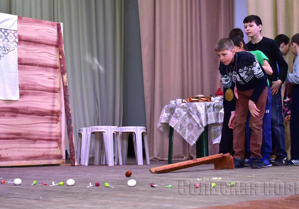 Звучит колокольный перезвон – время открытия фестиваля. Гостей и участников тепло приветствовали и поздравляли с праздником светлой Пасхи Глава Шатровского района Леонид Рассохин и настоятель Кирилло-Мефодиевского прихода иерей Сергий Кретов. Впервые на сцене РДК выступили участники шатровского детского театрального коллектива «Искра» с пасхальной сказкой «Колобок». Первый блин не вышел комом. Пожелаем ребятам дальнейших успехов на театральной сцене. Задорные частушки спели терсюкские девчата в нарядных сарафанах. Порадовали и расшевелили зрителей гости из Кодского: пасхальные игры мы вспомнили вместе с ними. Чьи писанки самые красивые да крепкие? Как прокатить яйцо так, чтобы не разбить да приз выиграть? А катали ли вы когда-нибудь яйца на полотенцах? Повеселились от души! Без подарка со сцены никто не ушёл. Мостовские девочки подготовили трогательный танец с вербочками, а юноши – угощения для зрителей. Завершилась торжественная часть фестиваля красивой песней в исполнении Ларисы Ляпуновой, художественного руководителя Мостовского СДК.