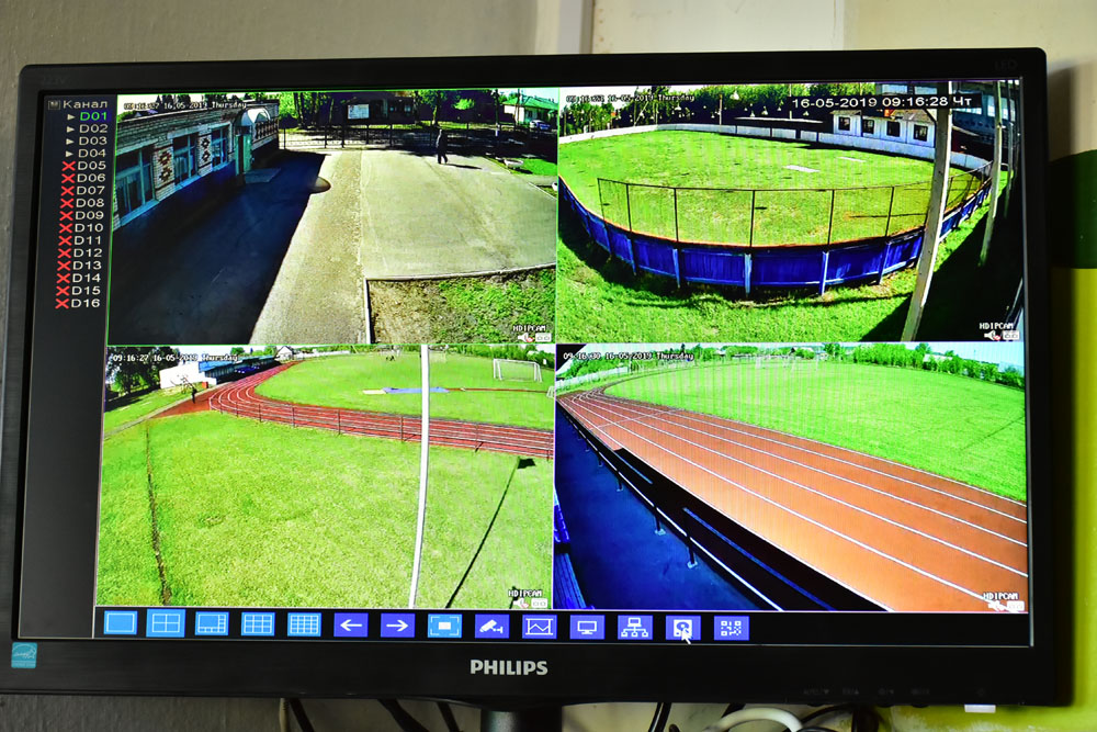 Комплексная охрана спортивного объекта поможет избежать чрезвычайных ситуаций во время проведения соревнований и культурно-массовых мероприятий. Постепенно камеры видеонаблюдения планируется установить и в других образовательных учреждениях согласно паспорту безопасности.