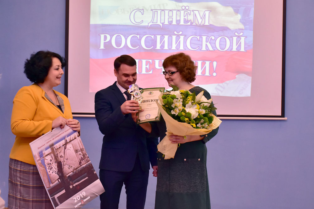 СМИ региона с профессиональным праздником поздравили и вручили награды партнеры мероприятия — Управляющий Курганским отделением Сбербанка Евгений Светлов, а также председатель Курганского союза журналистов Ирина Борисова. Они вручили призы победителям областных конкурсов среди начинающих журналистов - «Дебют» (награду получила ответственный секретарь «Сельской нови» Татьяна Маклакова), творческого конкурса - «Аграрное Зауралье». В номинации «В объективе — село» первое место занял Евгений Белокуров. Кроме того, наша газета стала победителем в номинации «За активное использование элементов инфографики» при освещении аграрной темы. В этом огромная заслуга заместителя главного редактора Владимира Черныша и программиста Андрея Бахарева. В торжественном мероприятии приняла участие ветеран коллектива, бывший редактор районной газеты Инна Степановна Гидревич.
