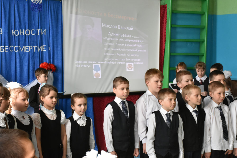 Школьники подготовили литературный монтаж, в котором говорилось о земляках-героях Шатровского района, отдавших жизнь за свободу родной земли. Завершился урок-мужества возложением цветов к подножию памятных стел участникам локальных войн, воинам-пограничникам и памятнику героям Великой Отечественной войны в центральном парке отдыха.