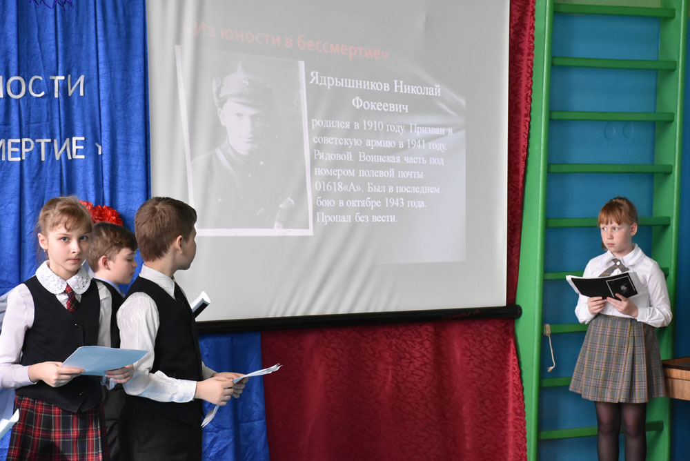 В рамках акции «Единый урок мужества» педагоги и учащиеся школы провели общешкольную линейку «Из юности – в бессмертие».