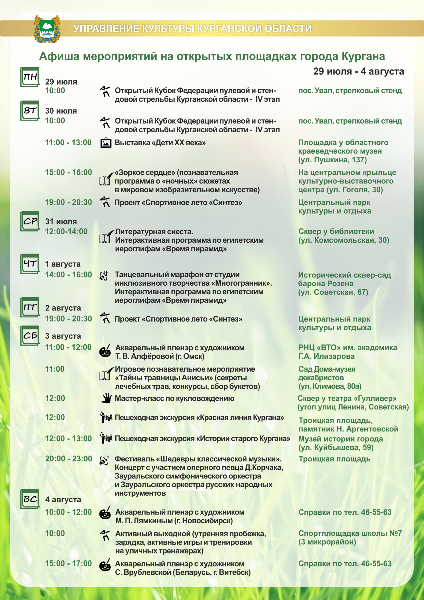 Афиша мероприятий на открытых площадках 29.07-04.08