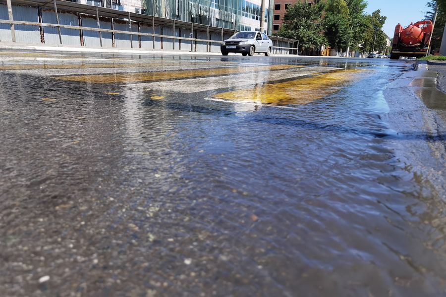 К настоящему моменту канализационные воды действительно перестали выходить наружу. На место приехала бригада коммунальщиков, которая занялась ремонтом сетей. Нечистоты быстро высыхали на раскаленном асфальте и солнце. Но запашочек остался...