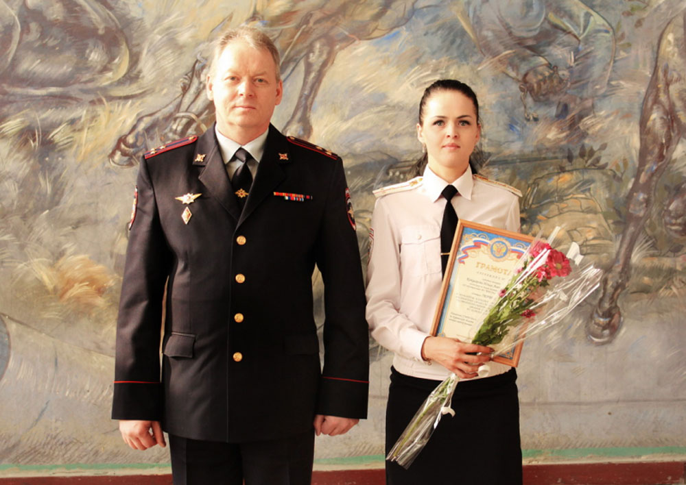 Награждение. Инспектор ПДН Юлия Кокшарова с заместителем начальника полиции (по охране общественного порядка) УМВД России по Курганской области полковником полиции Андреем Мамаевым.