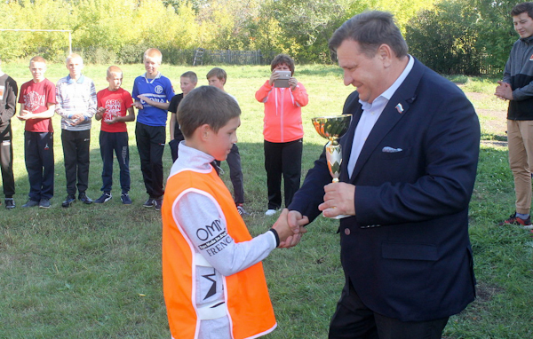 В селе Верхняя Теча Катайского района открылась новая спортивная площадка. Она стала результатом реализации социального проекта Курганской областной Думы «Депутат – СМИ – население: грани взаимодействия». Объединив усилия, депутат Курганской областной Думы Андрей Половинкин и коллектив Катайской районной газеты «Знамя» поддержали инициативу жителей села Верхняя Теча. В итоге на благоустроенной территории появились турники, баскетбольные площадка и ворота для игры в футбол. Дополнительным подарком от Андрея Половинкина стали сетки на футбольные ворота. Площадку открыли товарищеской встречей между футбольными командами Верхнетеченского и Ушаковского сельских советов. Со счетом 2:0 победу одержала команда хозяев. Напомним, что ежегодно Курганская областная Дума с целью поддержки лучших общественных инициатив проводит конкурс на предоставление грантов для реализации социальных проектов «Депутат – СМИ – население: грани взаимодействия». В этом году мероприятия проекта проводятся под девизом «Наш спортивный двор». Социальные проекты направлены на массовое развитие физкультуры и спорта в Курганской области и предусматривают сооружение, установку, реконструкцию спортивных площадок, снарядов и других спортивных объектов. - Развитие спорта и привлечение подрастающего поколения к здоровому образу жизни – это она из основных задач, стоящих сегодня перед властью и обществом, - считает Председатель Курганской областной Думы Дмитрий Фролов. – Социальный проект зауральского парламента направлен на то, чтобы поддержать активность неравнодушных жителей. С помощью депутатов, на деньги выделяемого гранта, а также на дополнительно привлеченные средства во дворах, парках, на пришкольных территориях появляются новые спортивные площадки и сооружения.