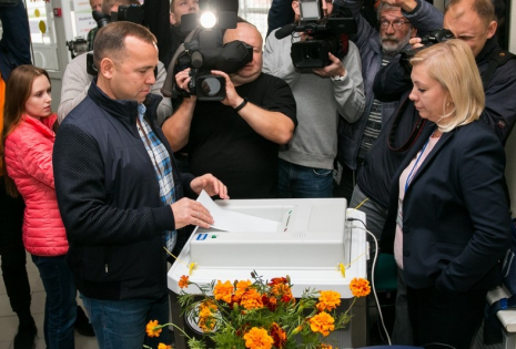 На избирательный участок глава региона пришел вместе с сыном