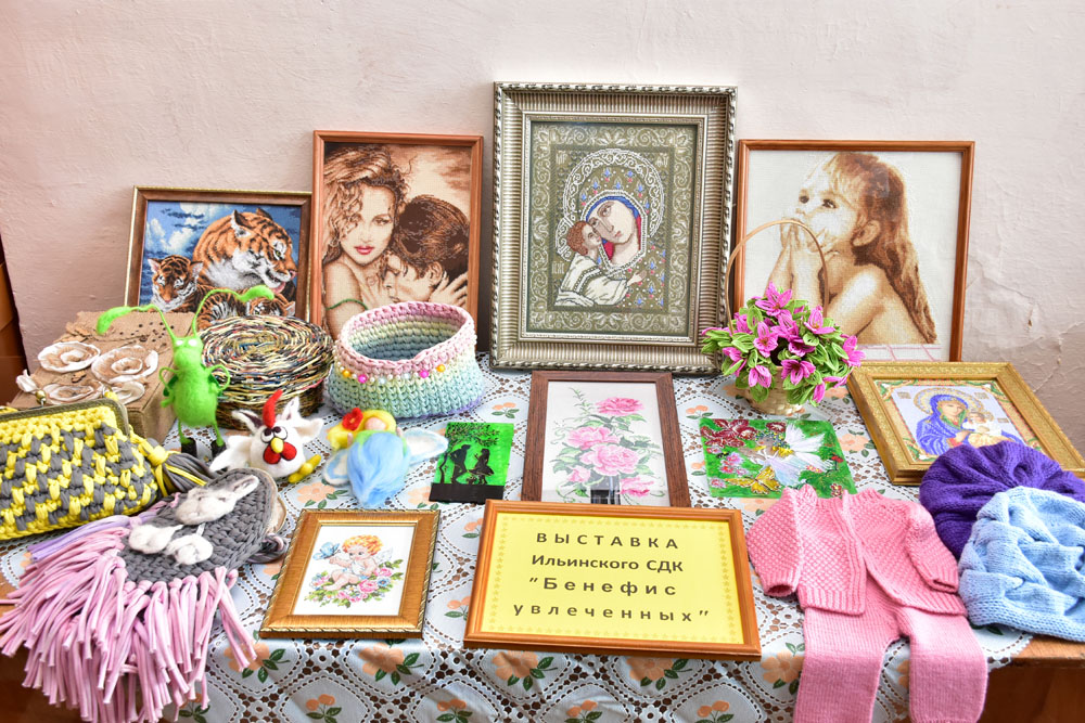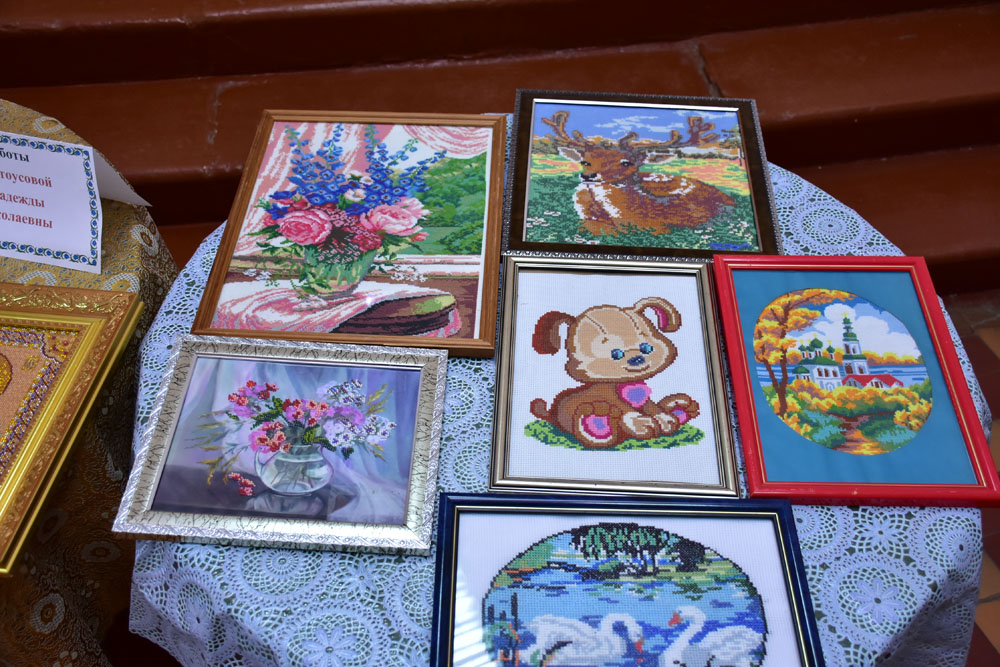 Выставка декоративно-прикладного искусства встречала гостей праздника. Вышитые картины, иконы, вязание, искусно декорированное овощное ассорти задерживали зрителя у экспозиций.