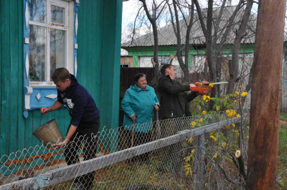 Рада таким гостям была пенсионерка Людмила Викторовна Козлова. В преддверии зимы накопилось много домашних дел, что не под силу ей было выполнить: засыпать фундамент дома, спилить старую черёмуху, сложить дрова. Всё это быстро и умело выполнили добрые помощники, не забыли и с праздником поздравить Людмилу Викторовну.