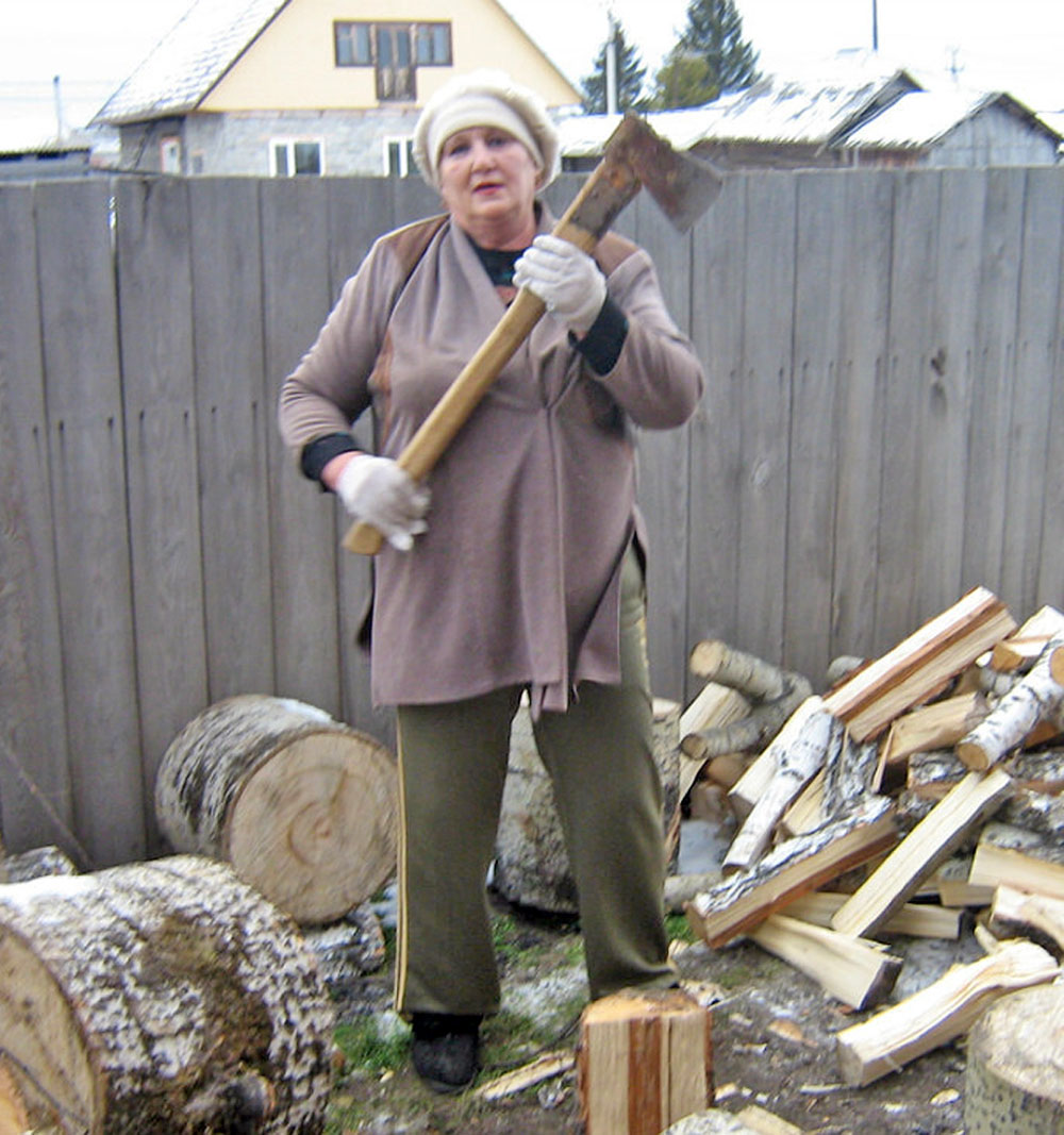 Людмила Тимофеева (а это фото с колуном было её) живёт в Барино. В свои «шестьдесят с хвостиком» перенесла немало.