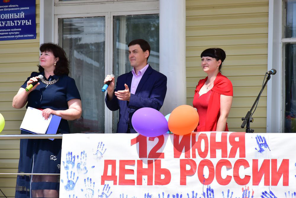 К 11 часам к площадке Шатровского РДК стали подходить односельчане. Ведущая праздничных мероприятий Людмила Кулаева поздравила всех земляков с праздником, рассказала основные вехи образования этой даты для россиян и затем передала слово участникам художественной самодеятельности. Работники культуры и любители песни показали концертную программу, в которой прозвучали стихи и песни о единстве и дружбе народов России.