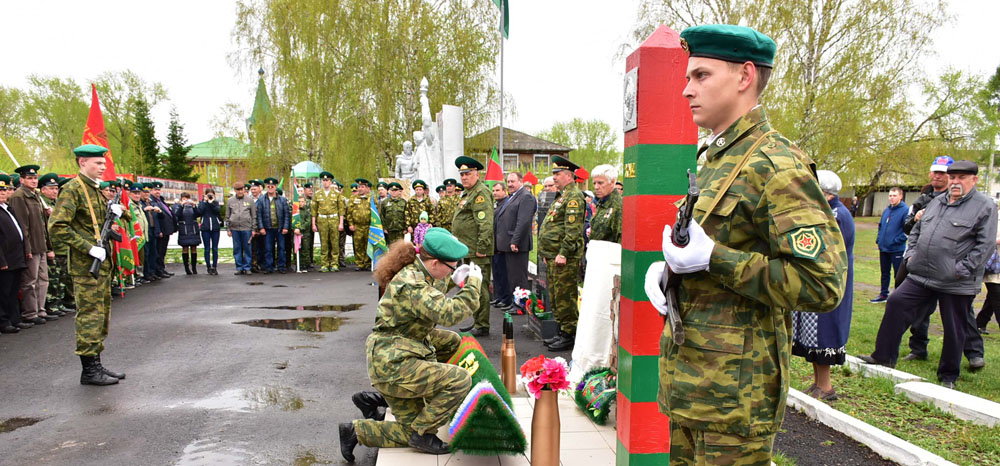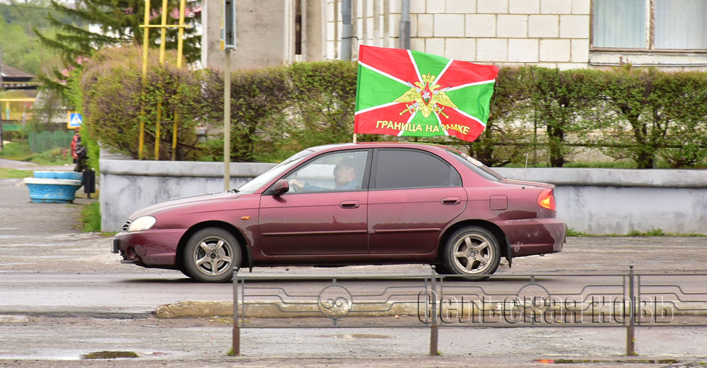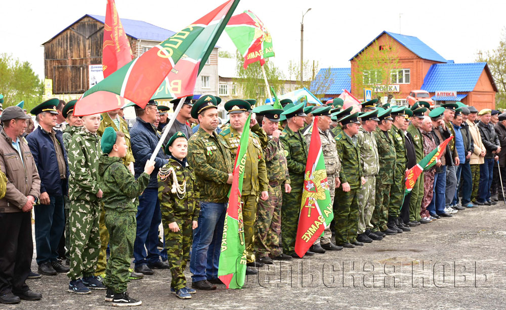 28 мая утренняя площадь районного центра украсилась флагами с символикой пограничных войск, которые несли люди в зелёных фуражках.