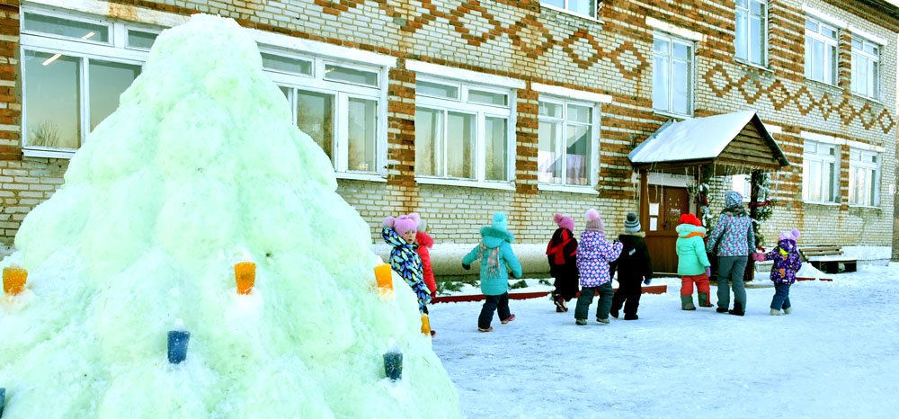В селе Шатрово одними из первых к созданию новогодних декораций приступили дошкольные организации. Воспитатели и сотрудники детских садов оформляют детские площадки, украшают фасады и окна зданий резными бумажными фигурками, развешивают гирлянды, создают снежные фигуры и раскрашивают красками.