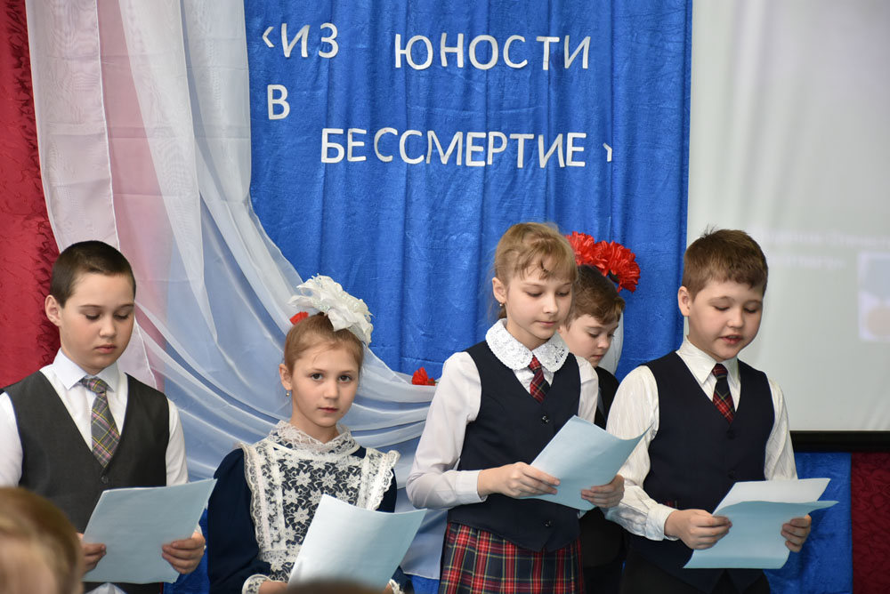 В рамках акции «Единый урок мужества» педагоги и учащиеся школы провели общешкольную линейку «Из юности – в бессмертие».