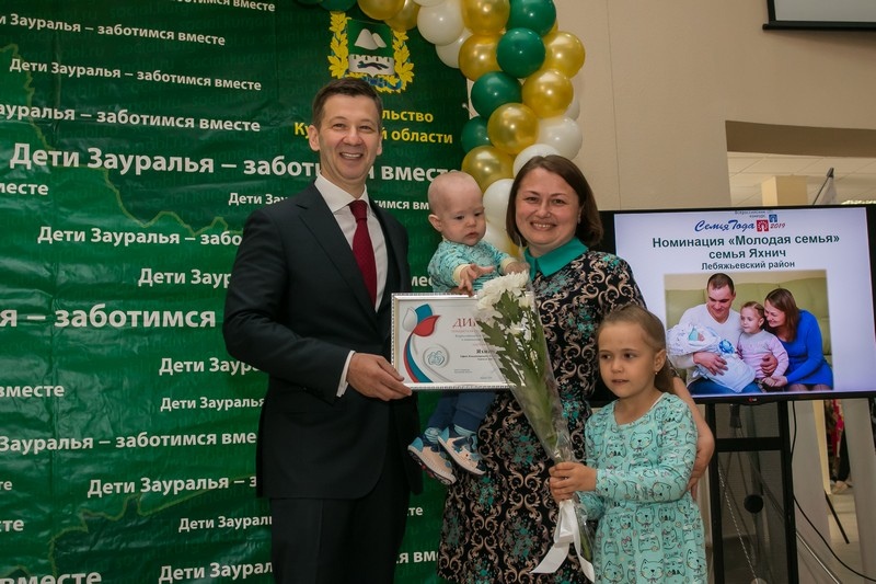 Владислав Кузнецов вручил награды победителям регионального этапа Всероссийского конкурса «Семья года», который проводится в России с 2016 года. Конкурс проходил по пяти номинациям. В номинации «Молодая семья» дипломом отмечены Ефим и Полина Яхнич из Лебяжьевского района, которые воспитывают дочь Злату и сына Антона. Семейный стаж этой семьи – шесть лет, папа успешно занимается силовым жонглирование гирями, активистка мама, несмотря на наличие двоих маленьких детей, возглавляет совет актива районного клуба молодых семей «Подкова».