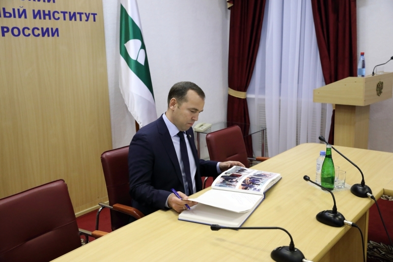Руководитель области также посетил курсантское общежитие КПИ и учебный корпус. В завершение визита он оставил свою запись в книге почетных посетителей.