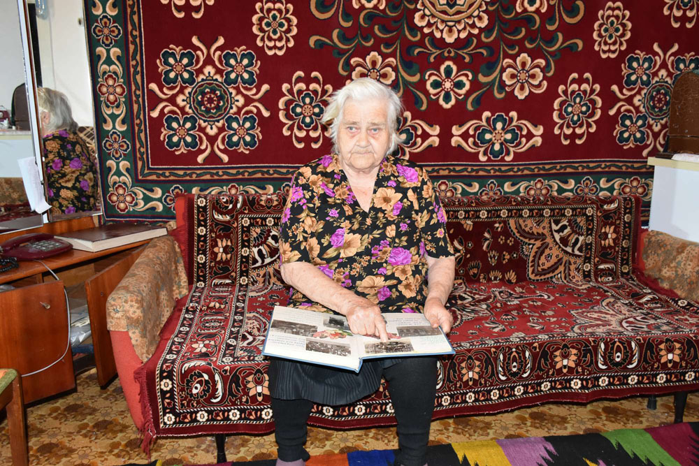 В третьем классе в школе создали тимуровские отряды. Мы все вступили в него. Под руководством учителя помогали старым людям сложить дрова, убрать во дворе..., а ещё была такая услуга — привести детей из садика домой. Их матери трудились на лесозаготовках, приходили уставшие, они были очень благодарны нам. Также при школе работал кружок рукоделия, мы учились чинить одежду, вязать на спицах. Вязали носки и рукавицы с двумя пальцами - на большой и указательный для бойцов Красной армии. Плакаты, которые висели повсюду «Чем ты помог фронту», «Всё для фронта, всё для Победы», не были для нас пустыми словами. Это было руководство к действию.