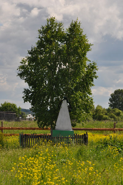 Первым в редакцию пришёл Александр Ильич Сунгуров из райцентра. Он не только поделился тем, что рассказывала ему мама, которая была прямым очевидцем кровавой расправы над её отцом, другими односельчанами в феврале-марте 1921 года, но и свозил журналистов «районки» в д. Помалова к братской могиле погибших коммунаров. Сегодня д. Помалова – одна из вымирающих деревень нашего района. Когда-то здесь кипела жизнь, трудились люди, звучали звонкие голоса детей, бегущих купаться на речку. Был крепкий колхоз, не большой, но сплочённый коллектив. Прошли те времена, исчезла та страна... Сейчас здесь время как бы остановилось. На тихих, заросших конотопкой улочках редко можно увидеть людей. Зато разная живность — курицы, поросята, собаки, чувствуют себя вольготно. Картина умилительная, прямо на ходу делаю несколько фотоснимков. Двигаемся дальше к памятнику погибшим коммунарам. Он расположен в центре деревни, хотя сейчас это очень условно. Несмотря на «возраст», советский «пирамидкой» обелиск выглядит достойно. Он огорожен штакетником, снизу покрашен зелёной краской, сверху побелен, рядом одинокая кудрявая берёзка. Жаль, фамилии на обелиске не сохранились. Сегодня мы точно знаем, что здесь покоится прах Егора Ивановича Вахрушева, деда А.И. Сунгурова. Вот что рассказал о том времени Александр Ильич:
